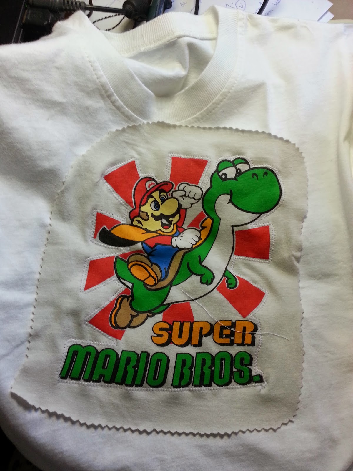 Nah dia punya kaos gambar Mario & Yoshi yang sudah kekecilan